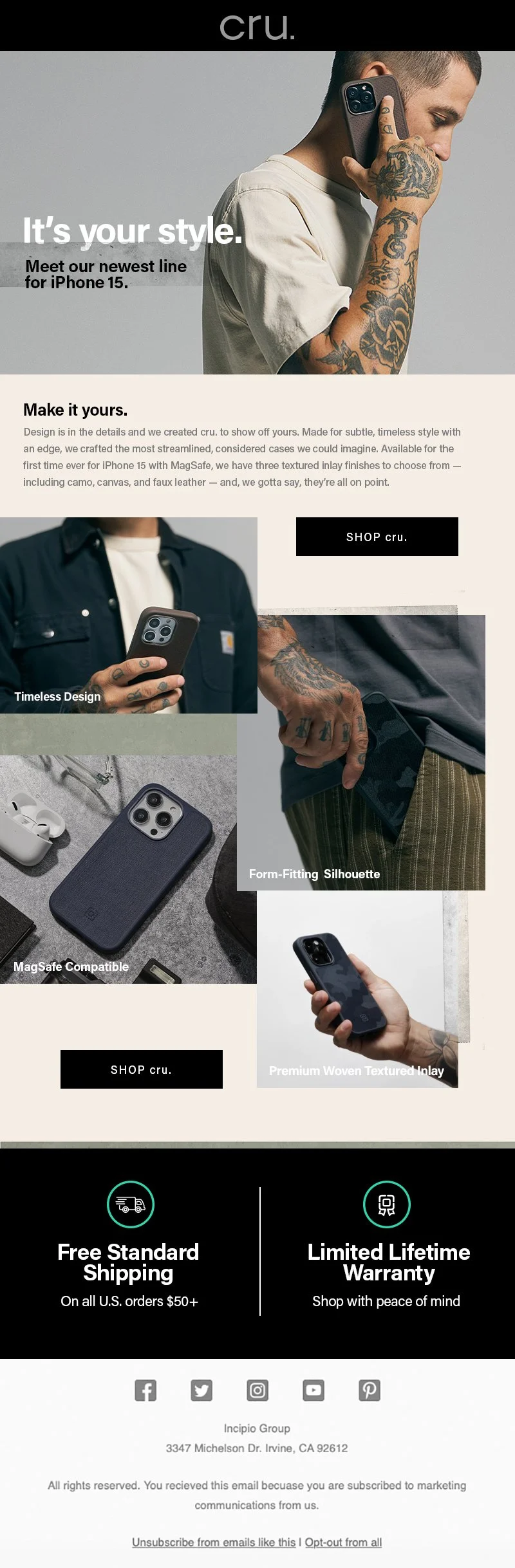 Incipio | cru. Collection Launch Landing page: https://incipio.com/pages/cru Launch video for website and social. Email newsletter