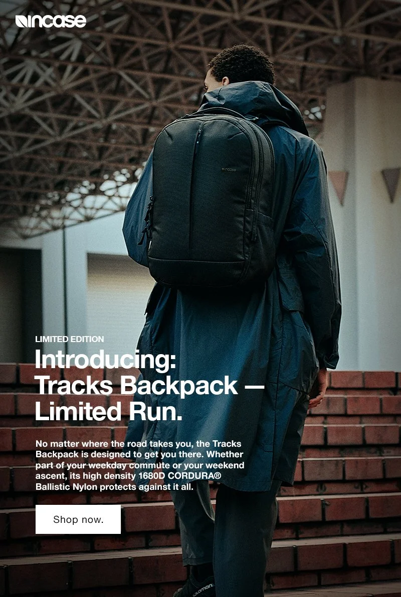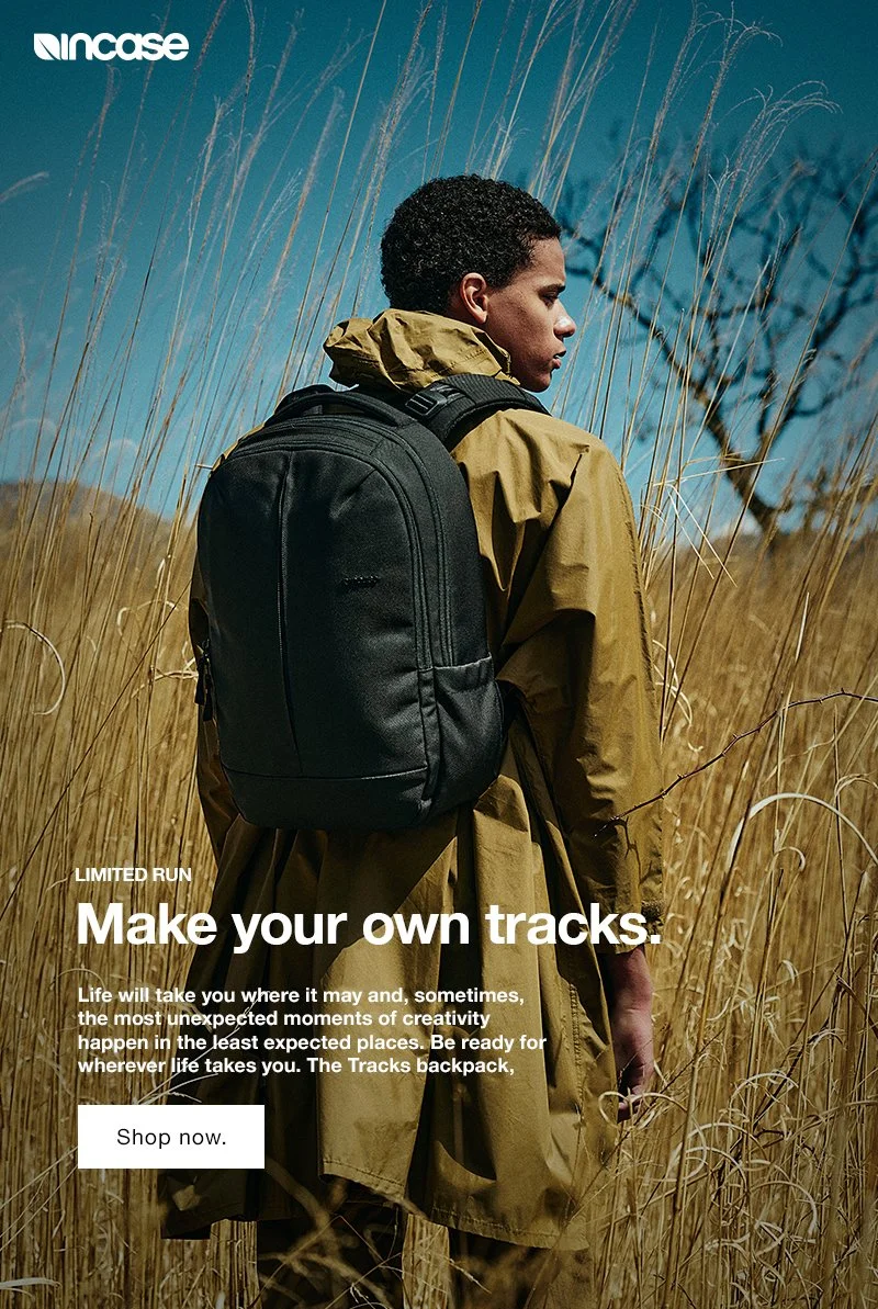 Tracks Backpack_ Launch campaign // Fall 2024 Launch emails (click to enlarge) Social (click to enlarge) Website banner (click to enlarge)